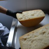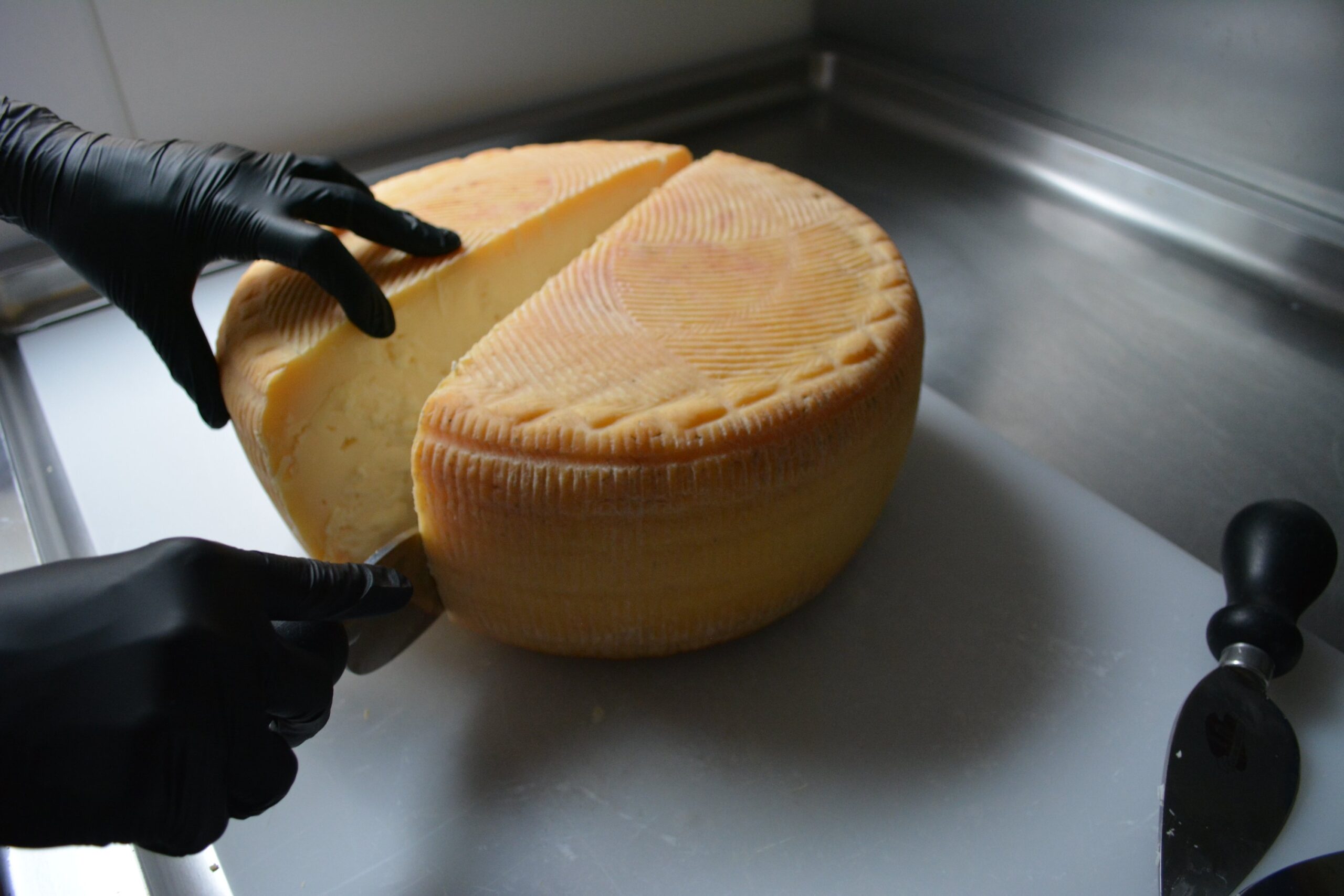 ヤギの風味を加えて、約12ヶ月熟成させた山のチーズです。
